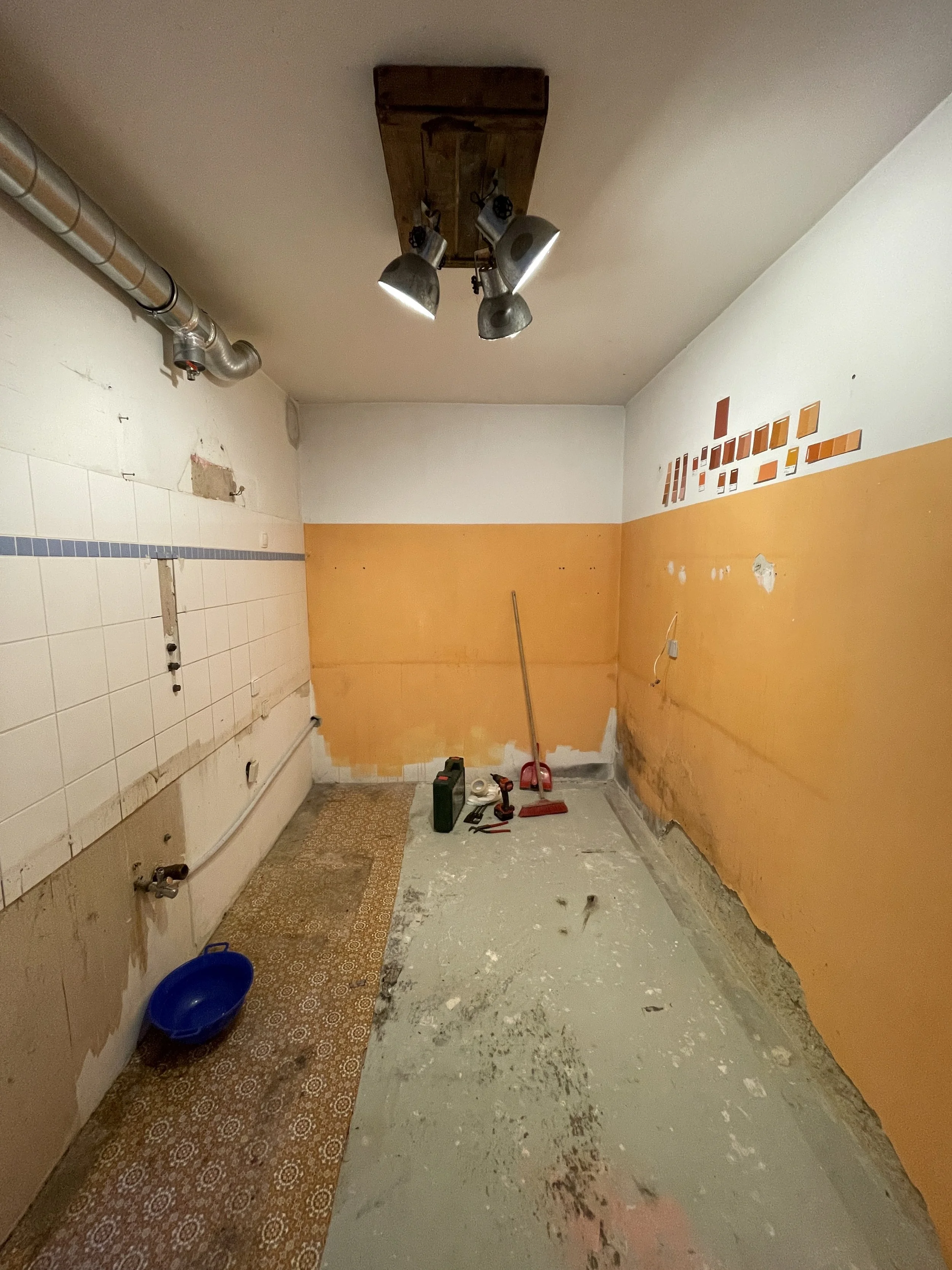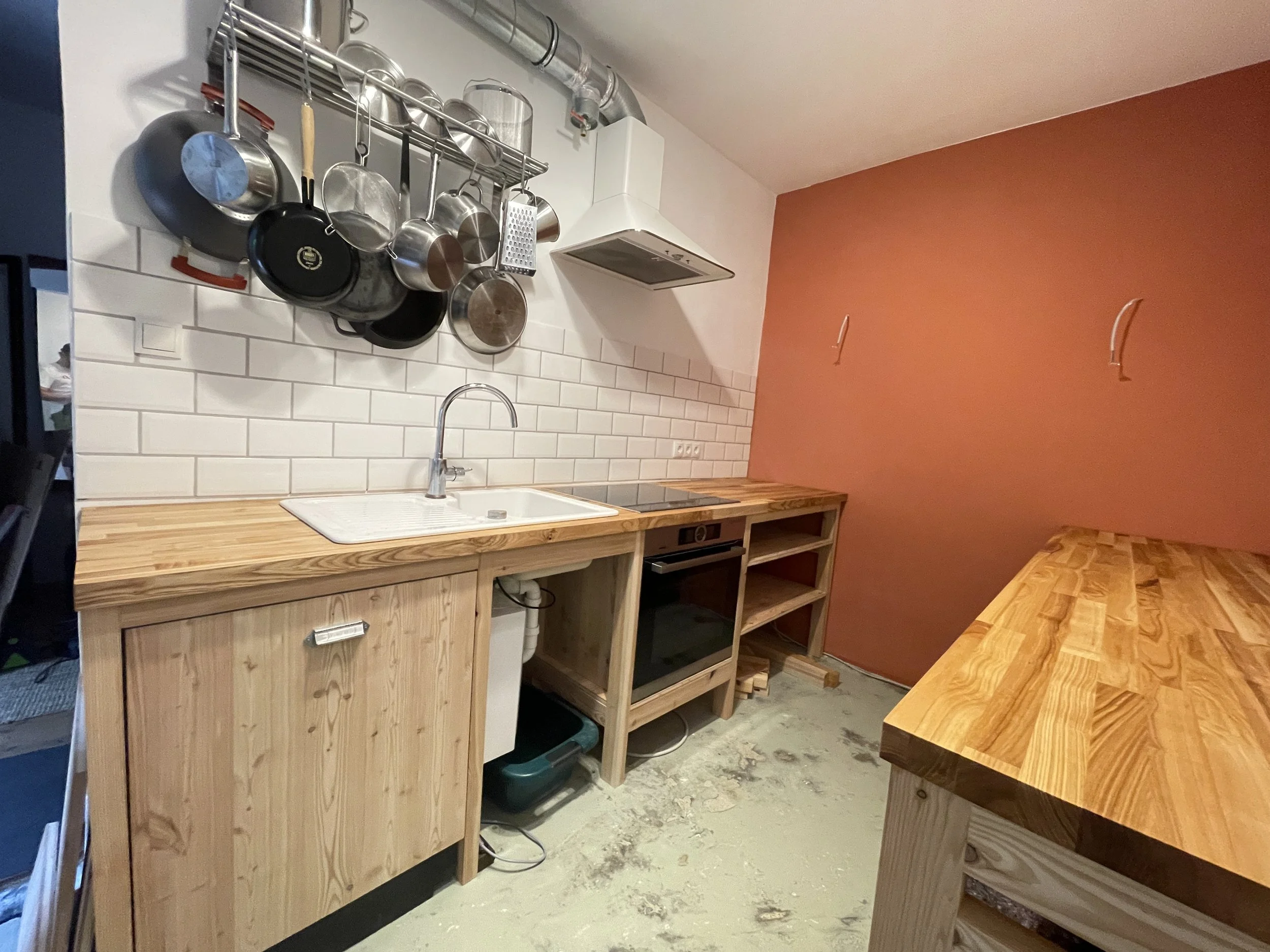 Wir bauen eine Küche! Einmal mit Alles: Ausräumen, Wände und Boden renovieren, Stemmarbeiten, Elektro neu, Verputzen und Malen. Und natürlich mit dem Küchenbau selbst. Ach ja - und alles von uns entworfen, geplant und durchgeführt.